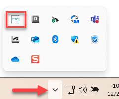 You may see the CTC Access icon either directly in the System Tray (especially when it first starts) or, more commonly, you'll see it in the icon panel that pops up when you click on the “up arrow” in the System Tray: