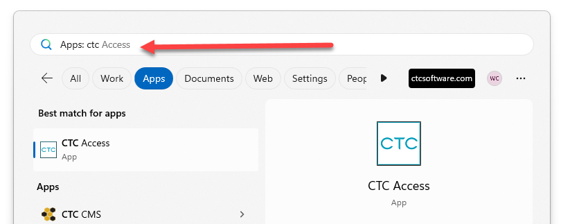 If you use the default Windows 10 and 11 interfaces, simply type “CTC” in the search box and choose it from the list: