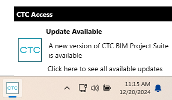 The “Check for updates now” choice will check for any updates that have become available since the versions of CTC tools you have installed were released. If any updates are available, the popup notification will appear.