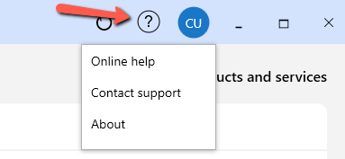 Once you get successfully signed in, your initials will appear in the title bar as a button that can be used to access information about your account. This is a sample of what the main dialog might look like: