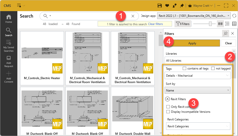 - Can be filtered to only search specific parameter values, company-wide, by BIM Managers