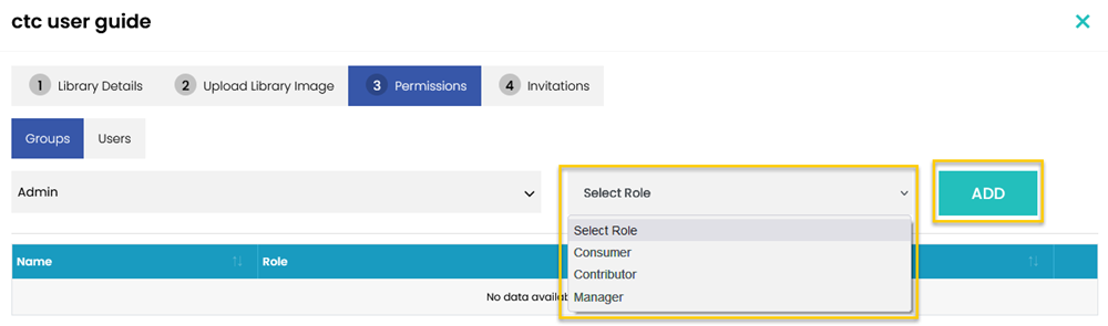 Assigning groups, users, roles and sending invitations can be done after a library is created. Libraries will not be visible to other users in the CMS desktop application until they have been granted access.