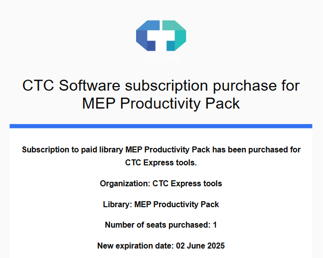 When the purchase is complete, an email will be sent to your account with the details of the purchase and another to confirm the subscription number of seats and end date.