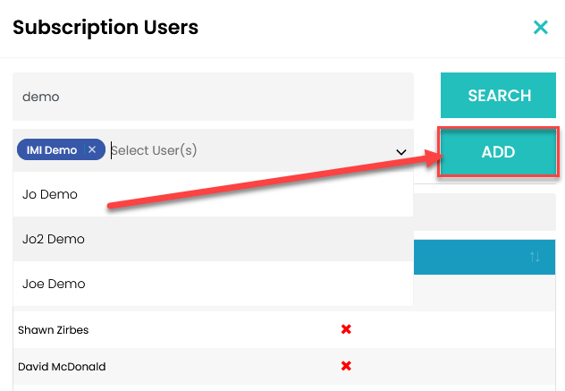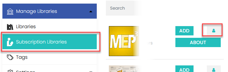 Subscription libraries that have been purchased will feature an 'ADD' button next to the user assignment button. Click 'ADD'. The process at this point is the same as the initial purchase.