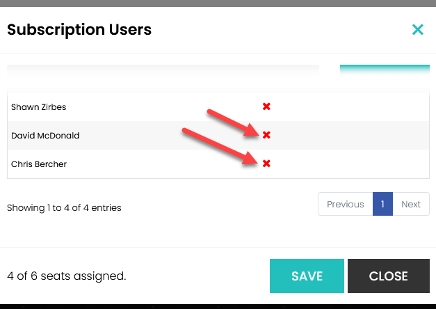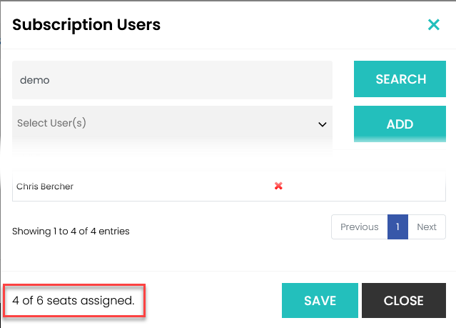 The number of seats available will be indicated. Once all are assigned, no more users can be selected.