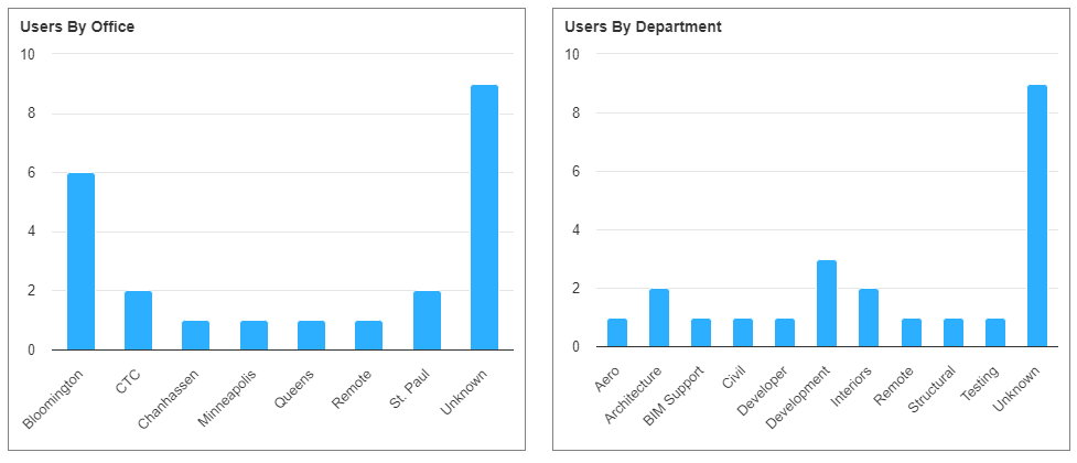 This dashboard helps managers quickly understand user activity in Nexus. Knowing where your users are assigned, and how active they are can help managers understand where user training and coaching may need to occur. This can also be a great starting point to understand licensing of Nexus across the firm.